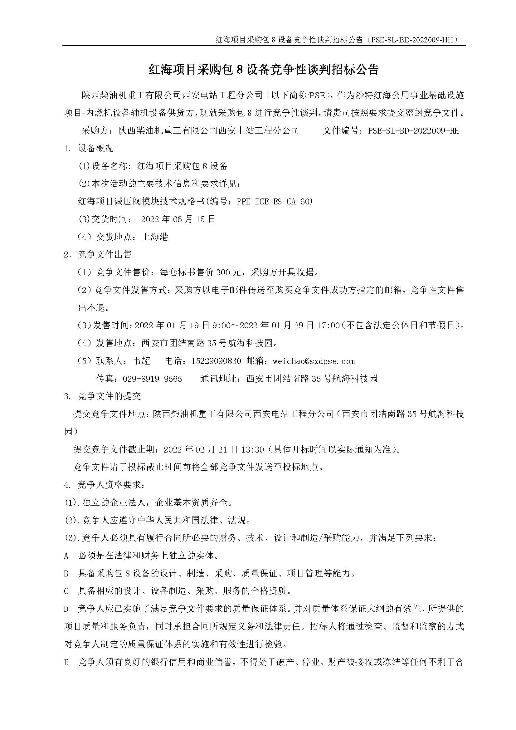 红海项目采购包8设备竞争性谈判招标公告