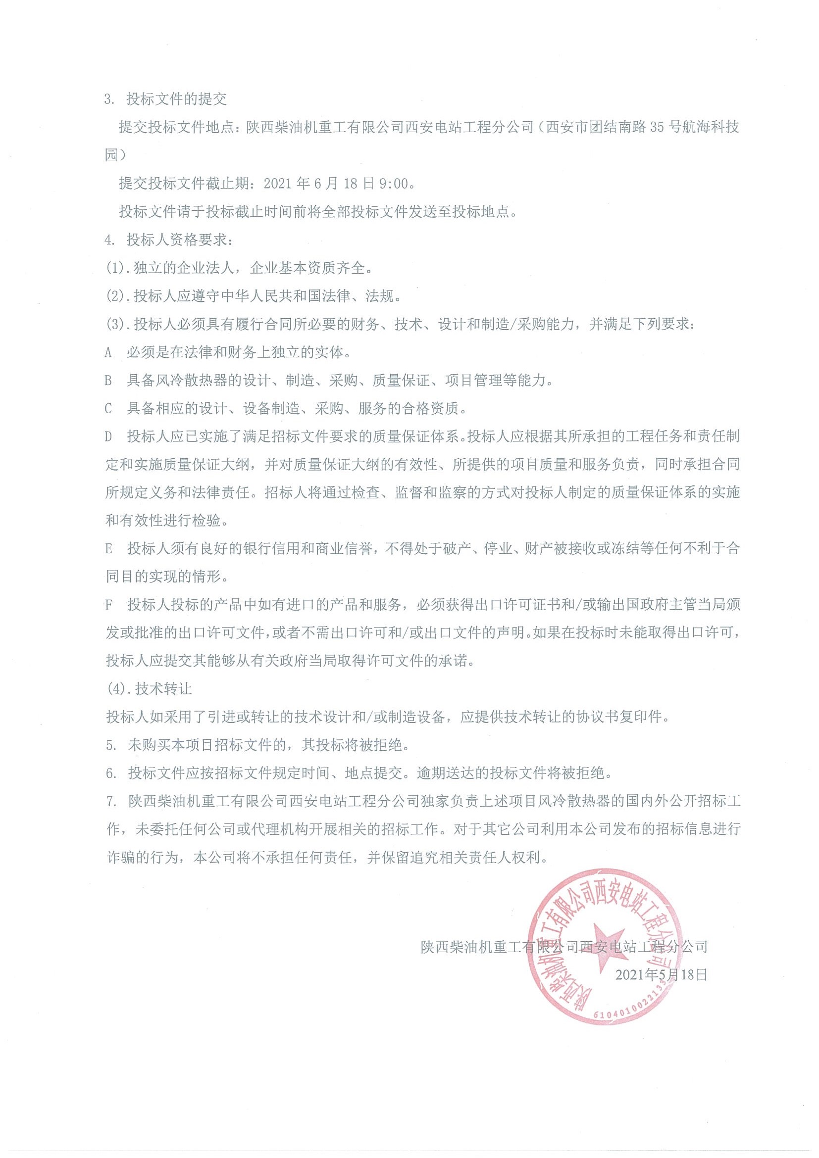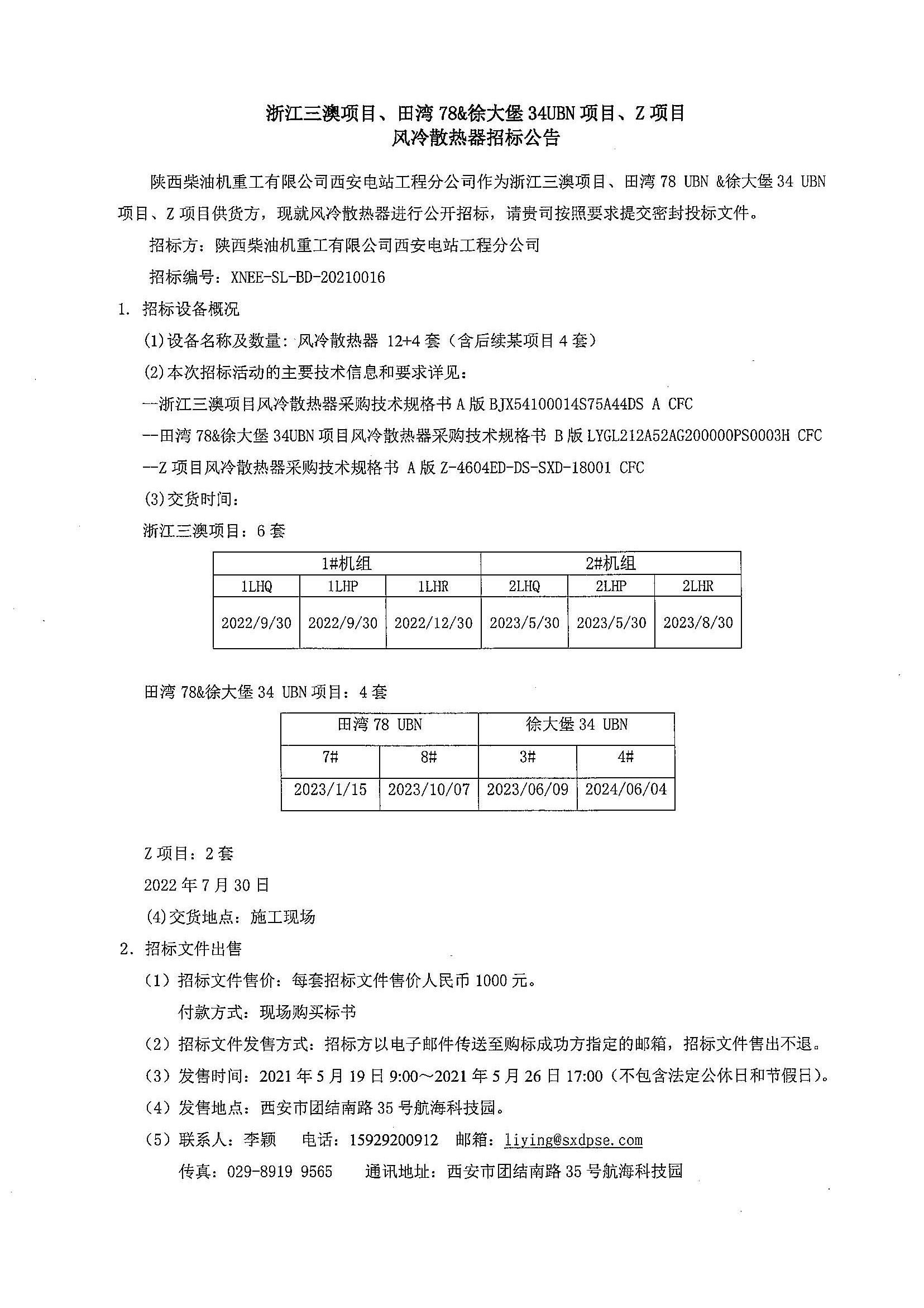 浙江三澳项目、田湾78&徐大堡34UBN项目、Z项目风冷散热器招标公告