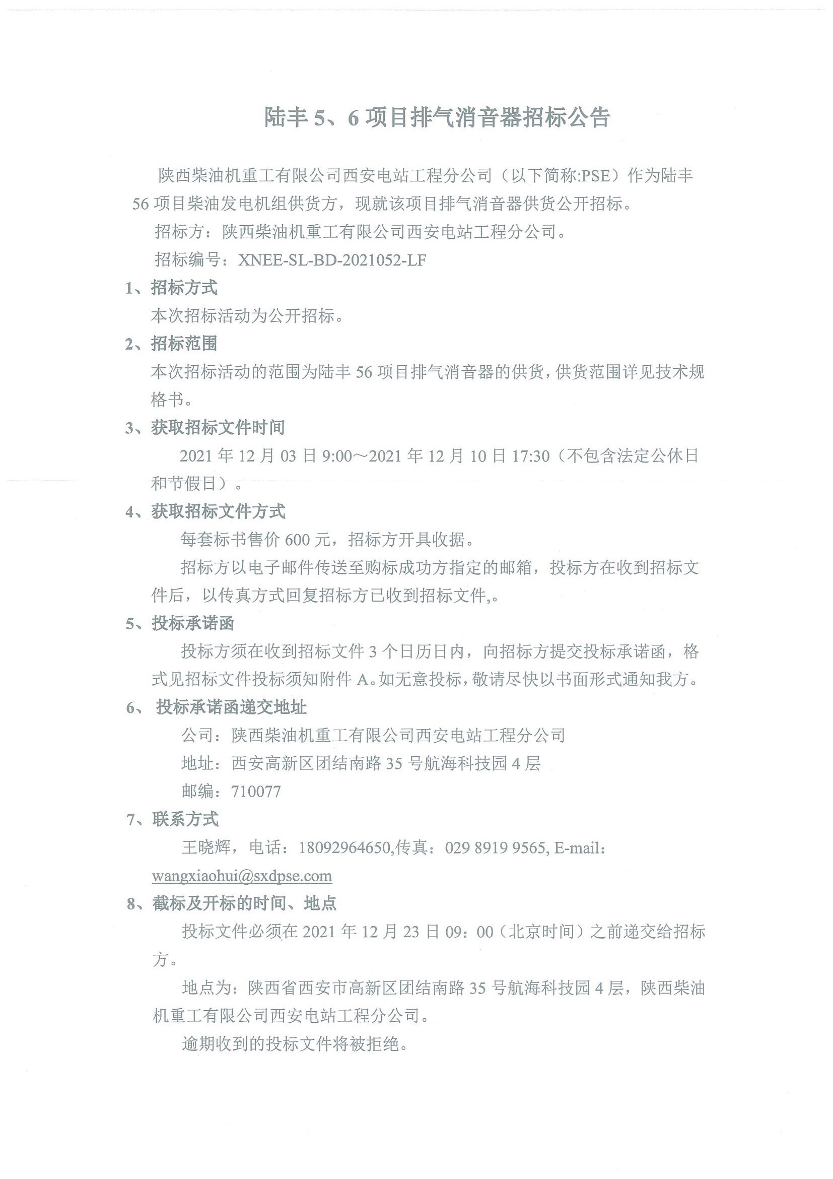 陆丰项目排气消音器招标公告