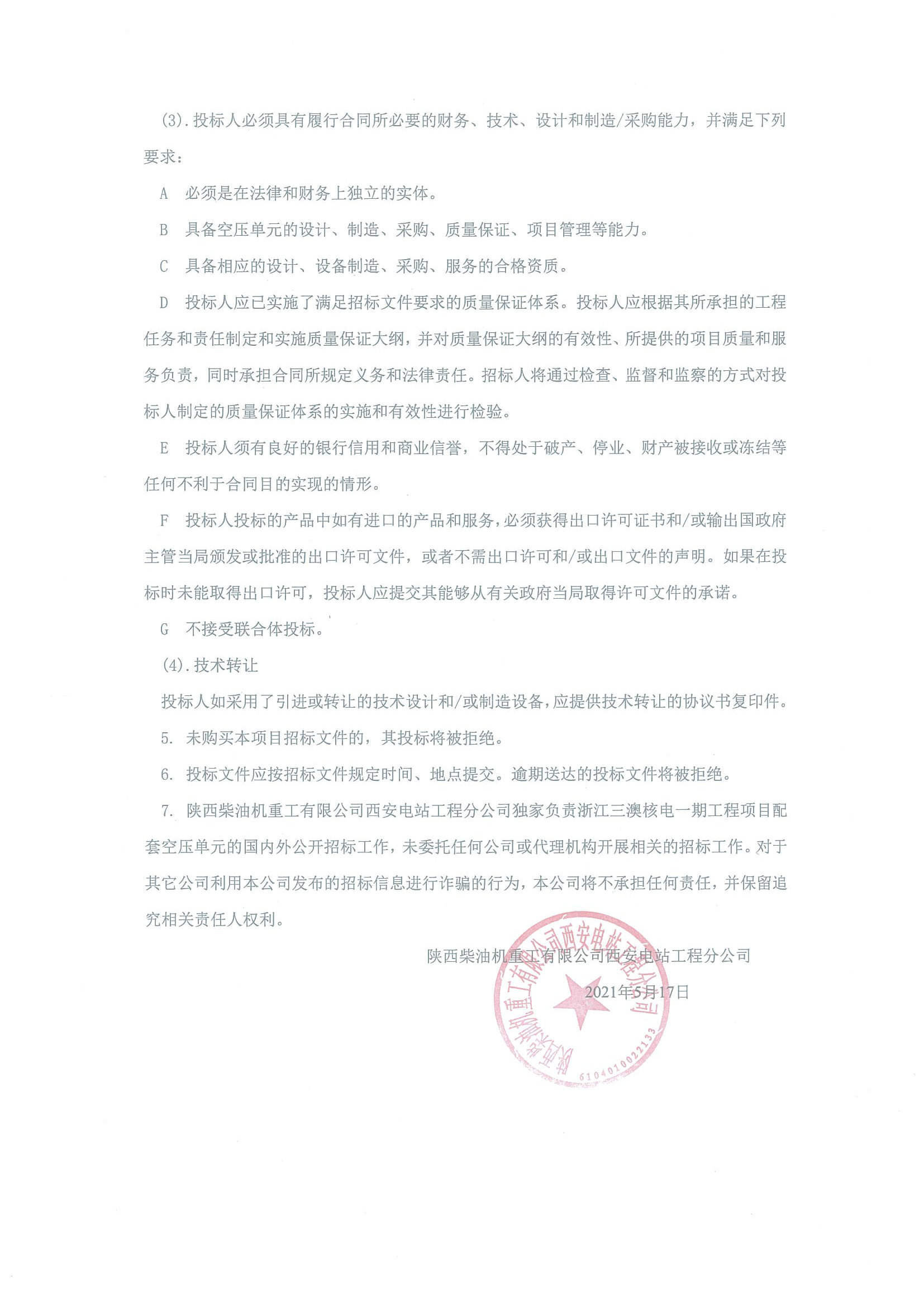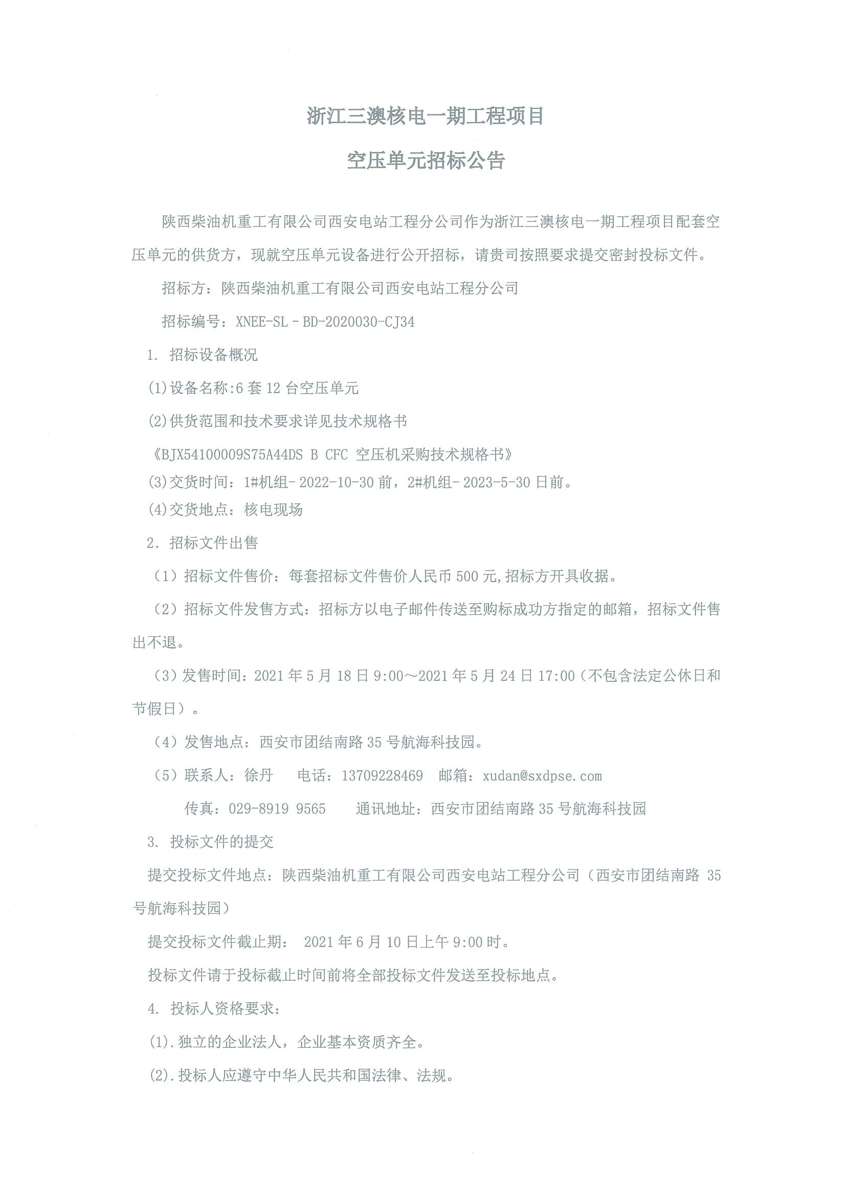 空压单元招标公告