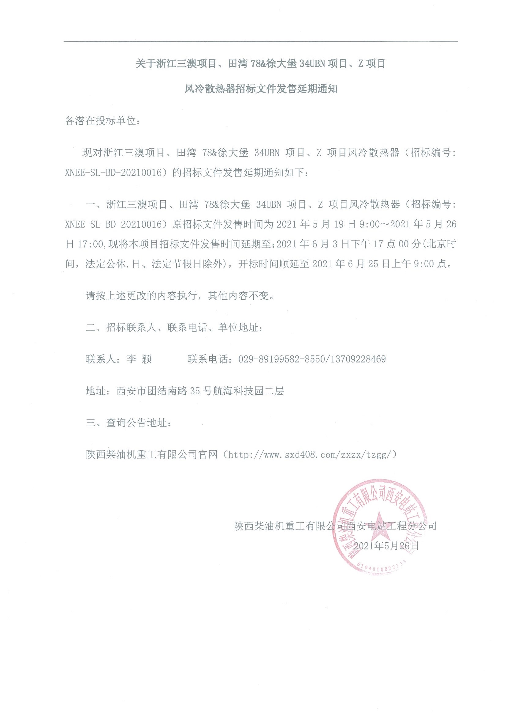 徐大堡34UBN项目、Z项目风冷散热器招标文件发售延期通知